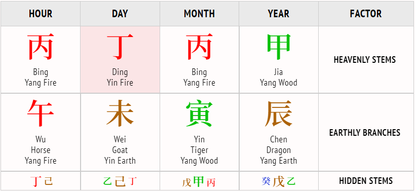 The Day Master is the Heavenly Stem of the person’s birthday.